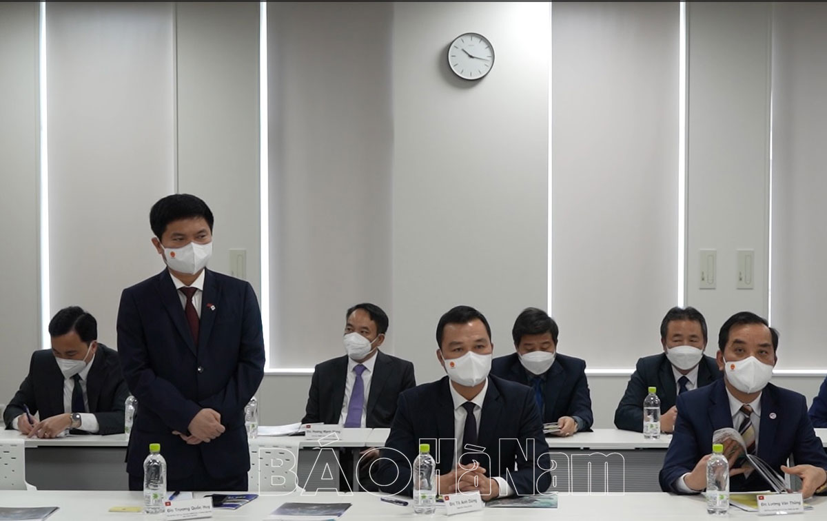 Thay mặt đoàn công tác, đồng chí Chủ tịch UBND tỉnh trân trọng cảm ơn sự đón tiếp nồng hậu của ngài Tổng Giám đốc và lãnh đạo tập đoàn Sumi. Đồng thời cho biết, tỉnh Hà Nam luôn thực hiện nghiêm các cam kết với nhà đầu tư. Thời gian tới, tỉnh sẽ tiếp tục chỉ đạo các sở, ngành, địa phương trong tỉnh tiếp tục tạo điều kiện thuận lợi, quan tâm giải quyết tốt các kiến nghị, đề xuất và những vấn đề mà tập đoàn quan tâm. Đồng chí Chủ tịch UBND tỉnh cũng đề nghị ngài Tổng Giám đốc và lãnh đạo tập đoàn Sumi sẽ tiếp tục quan tâm, tạo môi trường làm việc thuận lợi và thực hiện tốt các chế độ, chính sách đối với người lao động, tích cực tham gia các hoạt động an sinh xã hội trên địa bàn tỉnh để có đóng góp chung vào sự phát triển kinh tế - xã hội của tỉnh.