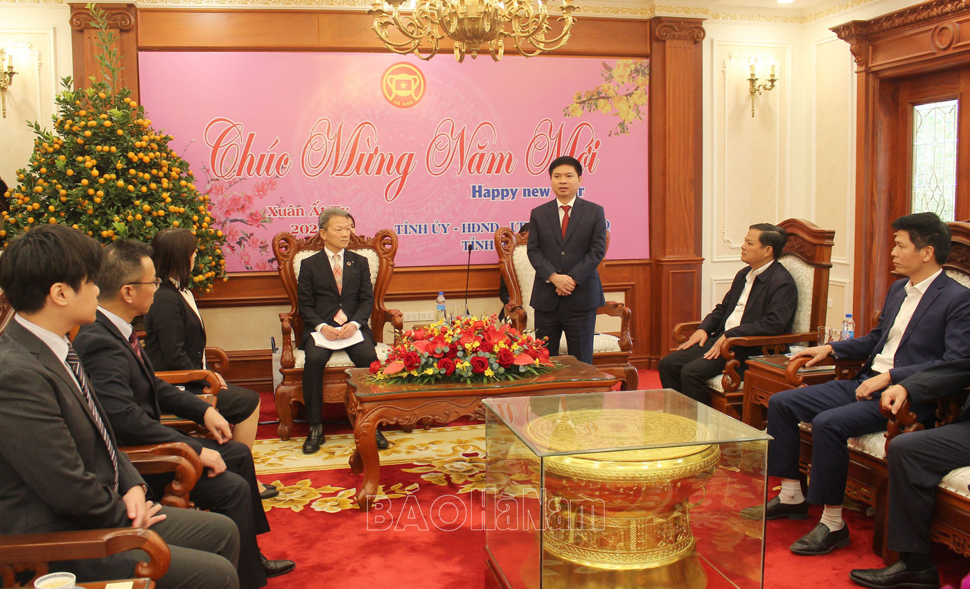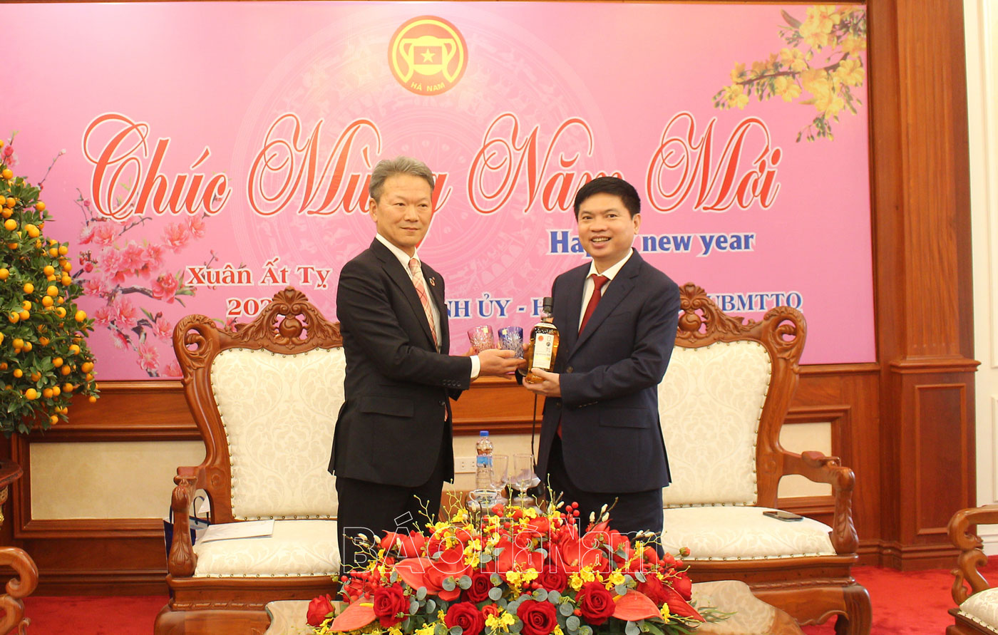Đồng chí Chủ tịch UBND tỉnh cũng thông tin tới đoàn về kết quả hoạt động sản xuất, kinh doanh của các doanh nghiệp Nhật Bản tại các khu công nghiệp của tỉnh; đồng thời cam kết tỉnh Hà Nam luôn quan tâm, tạo điều kiện thuận lợi về mọi mặt cho các doanh nghiệp nói chung, doanh nghiệp Nhật Bản nói riêng trong quá trình tìm hiểu, làm thủ tục đầu tư và hoạt động tại tỉnh. Đồng chí Chủ tịch UBND tỉnh bày tỏ mong muốn, trong thời gian tới, ông Toba Yoshitsugu cũng như Ngân hàng Joyo Bank sẽ là cầu nối quan trọng để kết nối các doanh nghiệp của Nhật Bản vào đầu tư tại Hà Nam.