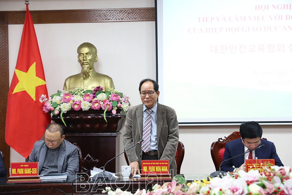 Ngài Park Noh Wan cũng cho biết, Hiệp hội Giáo dục An toàn Hàn Quốc là đơn vị hàng đầu của Hàn Quốc phát triển các vấn đề về an toàn. Hiệp hội đang kết hợp với một số bộ, ngành trung ương phát triển các dự án an toàn tại Viêt Nam. Ngài Park Noh Wan cũng cho biết, để đầu tư một trung tâm như thế cần nhiều điều kiện, và đầu tiên Hiệp hội mong muốn tỉnh bố trí một quỹ đất 20 ha để xây dựng trung tâm. Theo dự kiến, chi phí đầu tư ban đầu của Hiệp hội để xây dựng trung tâm khoảng 50 triệu đô la. Ngài Park Noh Wan mong muốn tỉnh tạo điều kiện để dự án được triển khai một cách nhanh chóng…