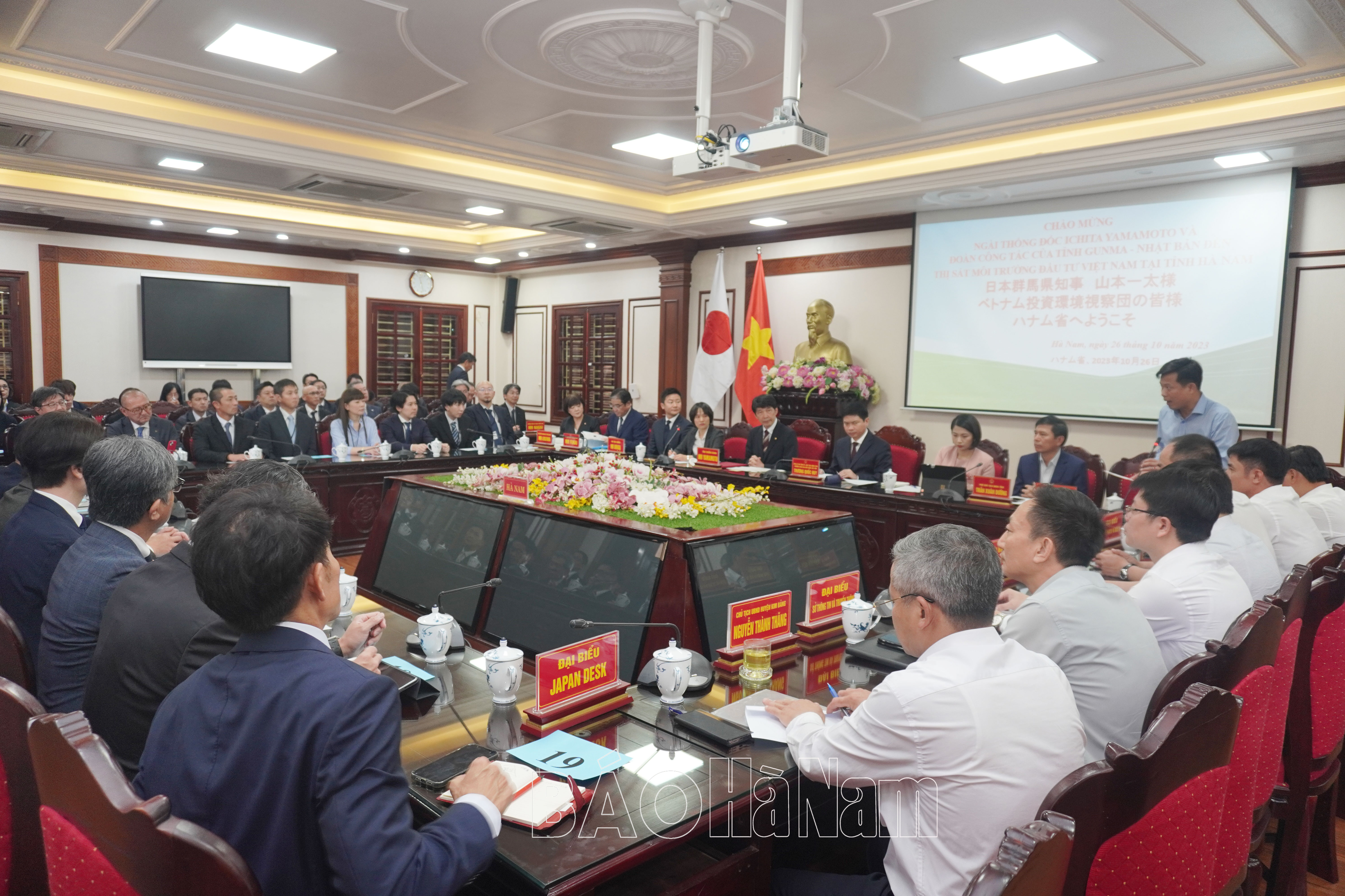 Ngài ICHITA YAMAMOTO, Tỉnh trưởng tỉnh Gunma đánh giá cao môi trường đầu tư của tỉnh Hà Nam cũng như kết quả mà tỉnh Hà Nam đã đạt được trong công tác thu hút đầu tư nước ngoài thời gian qua. Đến nay đã có 56 doanh nghiệp của tỉnh Gunma đầu tư vào Việt Nam với 62 lĩnh vực ngành nghề khác nhau. Trong Đoàn công tác của tỉnh Gunma cũng có 29 doanh nghiệp đến Hà Nam để tìm hiểu môi trường thu hút đầu tư.