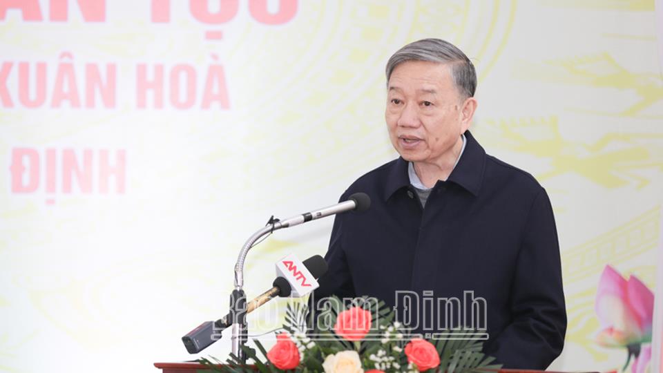 Thay mặt lãnh đạo Đảng, Nhà nước phát biểu tại Ngày hội, Đại tướng Tô Lâm đã ghi nhận, biểu dương, đánh giá cao những kết quả, thành tích Đảng bộ, chính quyền, quân và dân tỉnh Nam Định nói chung cũng như huyện Xuân Trường, xã Xuân Hòa và thôn Đông Dương nói riêng đạt được trong thời gian qua. Đó là thành quả của sự đồng thuận, chung sức, đồng lòng của nhân dân, của cấp ủy, chính quyền, MTTQ, các đoàn thể chính trị - xã hội, các chức sắc, chức việc trong các tôn giáo nhằm thực hiện thắng lợi các nhiệm vụ phát triển kinh tế, văn hóa, xã hội của địa phương, không ngừng nâng cao đời sống vật chất, tinh thần cho người dân.