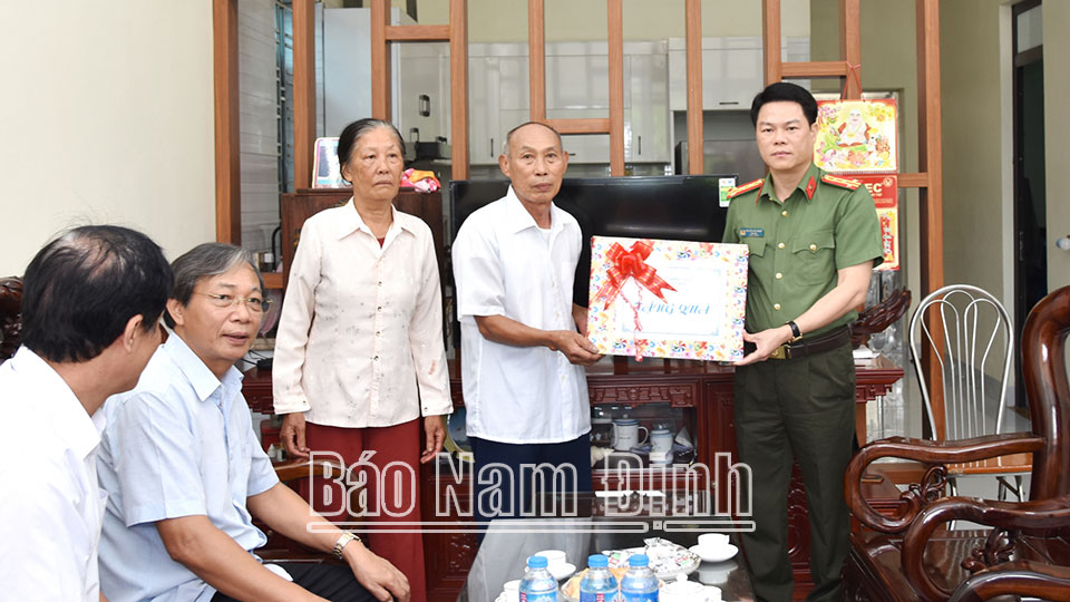 Đồng chí Giám đốc Công an tỉnh và lãnh đạo huyện Nghĩa Hưng đã đến thăm, tặng quà thương binh Đào Văn Rạng, sinh năm 1950, ở tổ dân phố Tân Thọ, thị trấn Liễu Đề; thăm, tặng quà vợ liệt sĩ Đinh Thị Tươi, sinh năm 1950, ở tổ dân phố Nam, thị trấn Liễu Đề; ông Nguyễn Văn Lợi, sinh năm 1952, là bệnh binh mất sức lao động 61%, ở xóm 8, xã Nghĩa Trung; thương binh Nguyễn Nhật Y, sinh năm 1944, ở xóm 4, xã Nghĩa Trung.