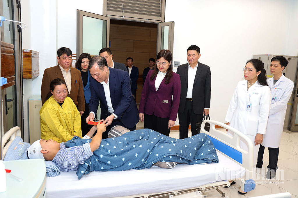 Đồng chí Lê Quốc Chỉnh, Phó Bí thư Tỉnh ủy, Chủ tịch HĐND tỉnh và các đại biểu thăm hỏi, động viên bệnh nhân đang điều trị tại Bệnh viện Đa khoa Nam Định.