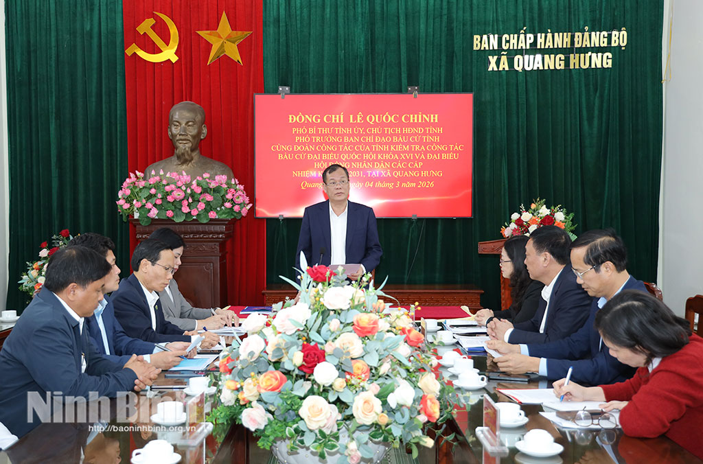 Chiều 4/3, Đoàn công tác của Ban Chỉ đạo Bầu cử tỉnh do đồng chí Lê Quốc Chỉnh, Phó Bí thư Tỉnh ủy, Chủ tịch HĐND tỉnh, Phó Trưởng Ban Chỉ đạo Bầu cử tỉnh làm Trưởng đoàn đã kiểm tra công tác chuẩn bị bầu cử đại biểu Quốc hội (ĐBQH) khóa XVI và đại biểu HĐND các cấp, nhiệm kỳ 2026-2031 tại xã Quang Hưng.