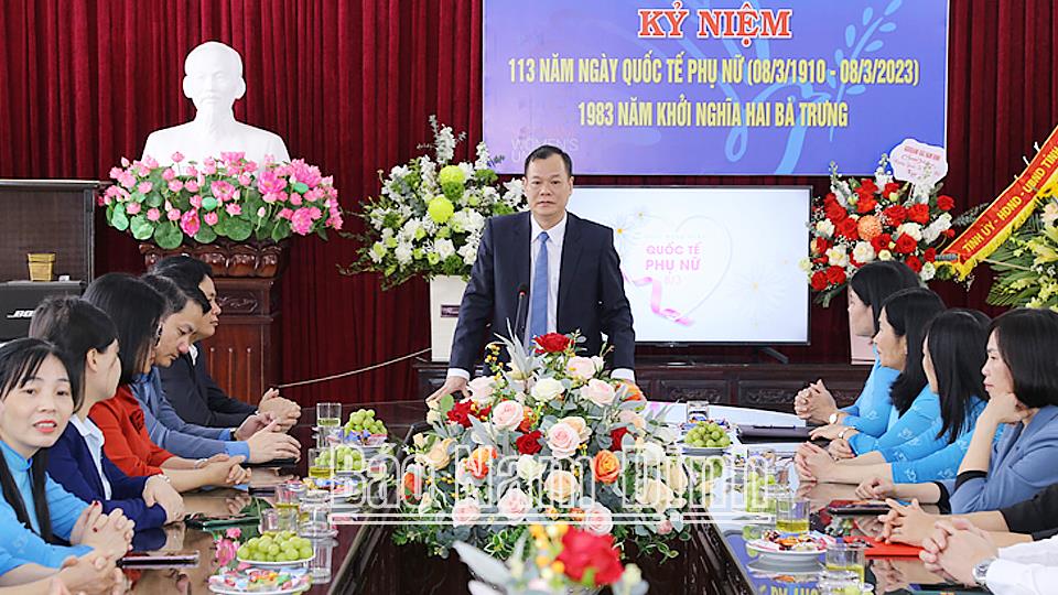 Nhân kỷ niệm 113 năm Ngày Quốc tế Phụ nữ (8-3-1910 - 8-3-2023) và 1983 năm Khởi nghĩa Hai Bà Trưng, chiều 7-3, đồng chí Lê Quốc Chỉnh, Phó Bí thư Thường trực Tỉnh ủy, Chủ tịch HĐND tỉnh, Trưởng đoàn Đoàn đại biểu Quốc hội tỉnh đã đến chúc mừng, động viên cán bộ, hội viên Hội Liên hiệp Phụ nữ (LHPN) tỉnh. Cùng đi với đồng chí Phó Bí thư Thường trực Tỉnh ủy có đồng chí Trần Minh Thắng, Ủy viên Ban TVTU, Trưởng Ban Dân vận Tỉnh ủy và lãnh đạo Văn phòng Tỉnh ủy, UBND tỉnh.