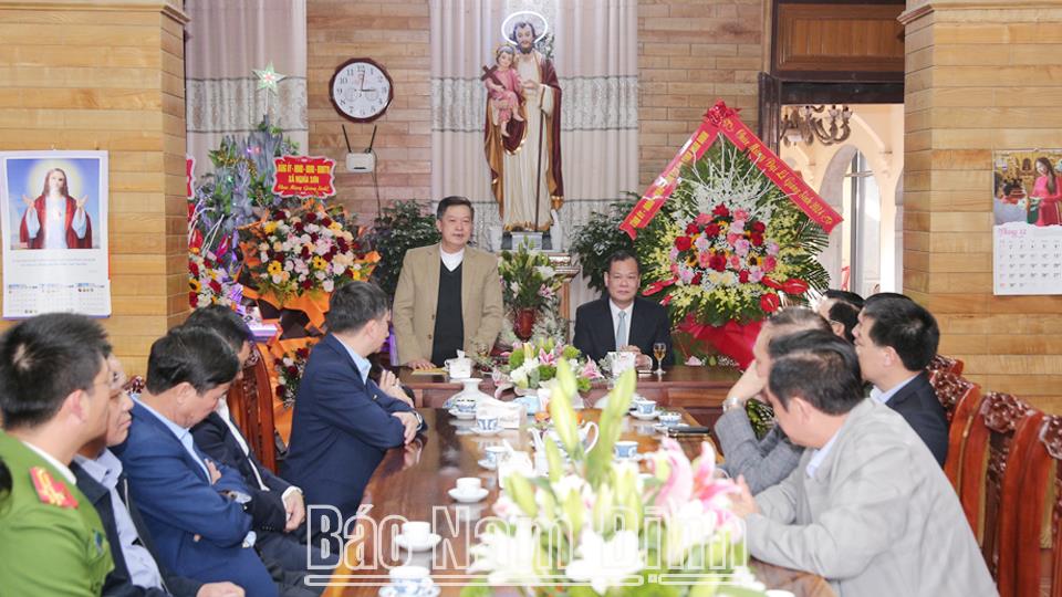 | Đồng chí Phó Bí thư Thường trực Tỉnh ủy Lê Quốc Chỉnh phát biểu chúc mừng Linh mục Hoàng Văn Tuấn, Chủ tịch Uỷ ban Đoàn kết Công giáo tỉnh và đồng bào giáo dân Giáo xứ Quần Liêu, xã Nghĩa Sơn (Nghĩa Hưng). |