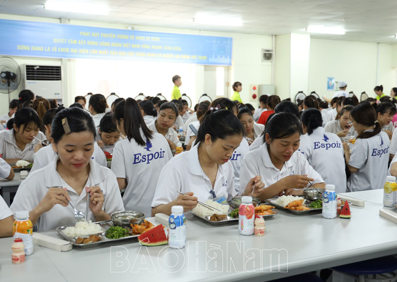 Trưa 6/8, tại Công ty TNHH Espoir Việt Nam, Khu công nghiệp (KCN) Châu Sơn, TP Phủ Lý, Liên đoàn Lao động (LĐLĐ) tỉnh tổ chức chương trình “Bữa cơm Công đoàn” cho toàn thể cán bộ, nhân viên, người lao động (NLĐ) tại đơn vị với thông điệp “Nâng cao chất lượng bữa ăn ca của công nhân lao động là nâng cao hiệu quả sản xuất của doanh nghiệp”.