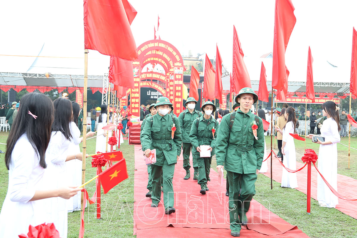 Phát biểu tại buổi lễ, lãnh đạo huyện Lý Nhân ghi nhận và biểu dương công tác tuyển quân của các xã, thị trấn đảm bảo dân chủ, công khai, đúng đường lối, chủ trương của Đảng, chính sách pháp luật của Nhà nước và quy trình, quy định trong công tác tuyển quân. Nhờ đó, số công dân nhập ngũ năm nay đủ tiêu chuẩn về phẩm chất đạo đức, lối sống, đáp ứng yêu cầu các đơn vị nhận quân, từng bước nâng cao chất lượng xây dựng lực lượng vũ trang chính quy, tinh nhuệ, hiện đại.