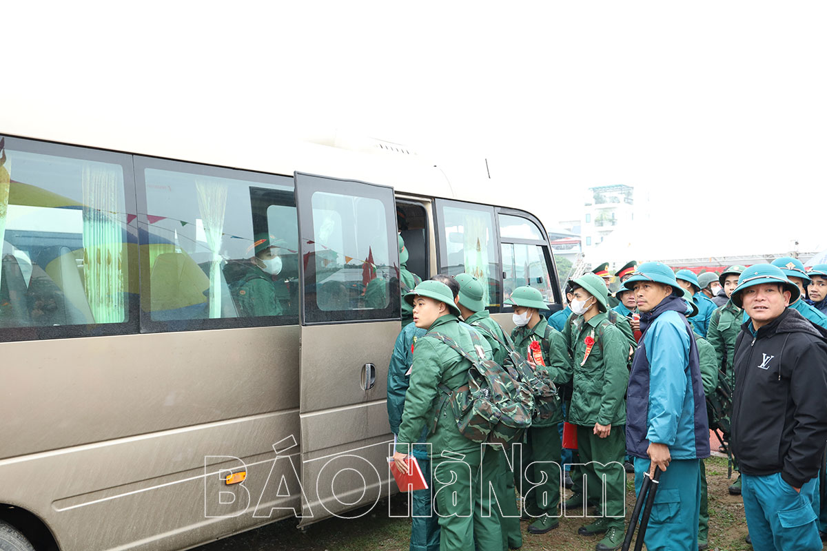 Các tân binh huyện Lý Nhân hăng hái lên đường làm nhiệm vụ bảo vệ Tổ quốc.