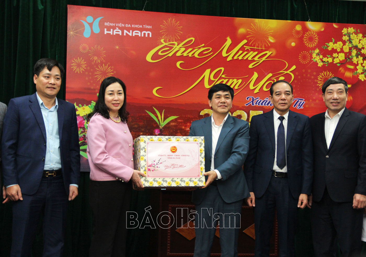 Ghi nhận, biểu dương những nỗ lực, cố gắng, đóng góp, hy sinh của các y, bác sỹ, nhân viên, người lao động và kết quả đã đạt được của bệnh viện trong thời gian qua, đồng chí Phó Bí thư Thường trực Tỉnh ủy Đinh Thị Lụa nhấn mạnh: Tập thể lãnh đạo, y, bác sỹ, nhân viên, người lao động bệnh viện tiếp tục phát huy tinh thần “lương y như từ mẫu”, đoàn kết, nỗ lực phấn đấu, khắc phục khó khăn, hoàn thành các chỉ tiêu, nhiệm vụ đã đặt ra. Tập trung thực hiện tốt nhiệm vụ khám chữa bệnh, bảo vệ và chăm sóc sức khỏe cho nhân dân; tích cực chủ động trong nghiên cứu khoa học, áp dụng những kỹ thuật mới vào công tác khám chữa bệnh, tiếp tục giữ vững thành tích là đơn vị tuyến đầu của tỉnh trong công tác khám chữa bệnh, chăm sóc sức khỏe nhân dân… Chuẩn bị bước sang năm mới Ất Tỵ, đồng chí Phó Bí thư Thường trực Tỉnh ủy Đinh Thị Lụa đã trao quà, gửi đến đội ngũ y, bác sĩ, người lao động Bệnh viện Đa khoa tỉnh cùng gia đình lời chúc đón một mùa xuân mới vui tươi, an lành và hạnh phúc.