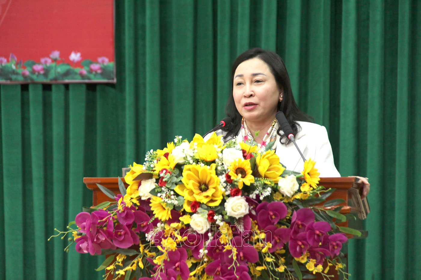Đồng chí Đinh Thị Lụa, Phó Bí thư Thường trực Tỉnh ủy phát biểu tại hội nghị.