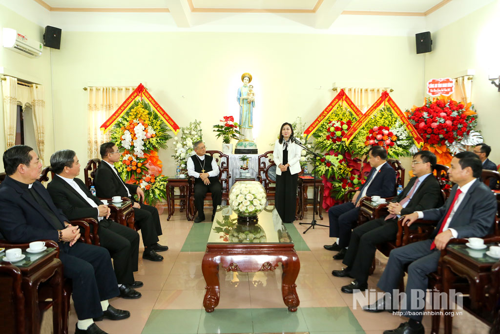 Thay mặt Tỉnh ủy, HĐND, UBND, Ủy ban Mặt trận Tổ quốc Việt Nam tỉnh, đồng chí Đinh Thị Lụa, Phó Bí thư Thường trực Tỉnh ủy đã gửi tới Giám mục Tô-ma Vũ Đình Hiệu, các vị linh mục, tu sĩ, chức sắc, chức việc và toàn thể tín hữu Công giáo trong Giáo phận Bùi Chu lời thăm hỏi ân cần, lời chúc mừng Giáng sinh an lành, hạnh phúc, tràn đầy hồng ân Thiên Chúa.
