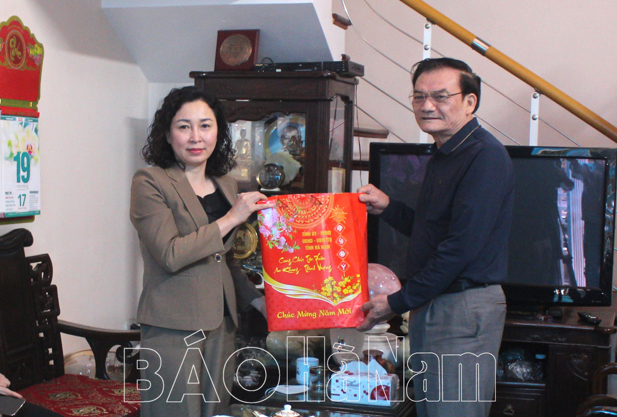 Đồng chí Phó Bí thư Thường trực Tỉnh uỷ Đinh Thị Lụa chúc Tết đồng chí Hoàng Nam, nguyên Ủy viên BTV Tỉnh uỷ, nguyên Trưởng ban Tổ chức Tỉnh uỷ.