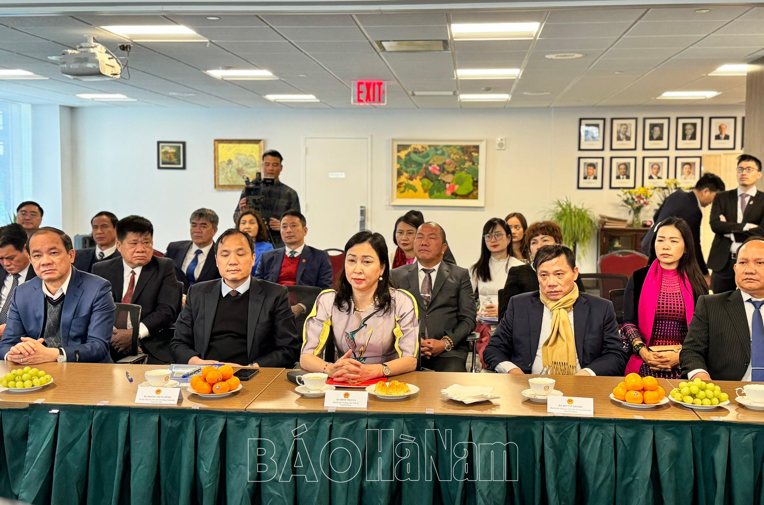 Các ý kiến thảo luận tại buổi làm việc và tọa đàm của Đoàn công tác Hà Nam được quan tâm và đánh giá cao. Tham tán Công sứ Nguyễn Hoàng Nguyên, Phó trưởng Phái đoàn Thường trực Việt Nam tại Liên hợp quốc cho biết, trong thời gian tới sẽ tích cực giới thiệu các nhà đầu tư Hoa Kỳ về Việt Nam nói chung và các tỉnh Hà Nam, Thừa Thiên Huế, Gia Lai, Hà Tĩnh, Yên Bái, Hòa Bình nghiên cứu hợp tác đầu tư.