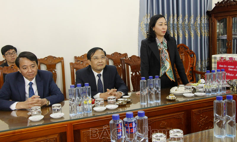 Tại nơi đến thăm, thay mặt đoàn, đồng chí Đinh Thị Lụa, Phó Bí thư Thường trực Tỉnh ủy đã thông tin nhanh một số kết quả nổi bật trong thực hiện các chỉ tiêu phát triển KT-XH của tỉnh năm 2022.