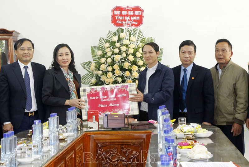 Nhân dịp lễ Chúa giáng sinh và mừng lễ Noel năm 2022, đồng chí Đinh Thị Lụa, Phó Bí thư Thường trực Tỉnh ủy đã đi thăm, tặng quà chúc mừng Linh mục Nguyễn Văn Khích và bà con giáo dân giáo xứ Tân Lang (xã Tân Sơn, Kim Bảng).