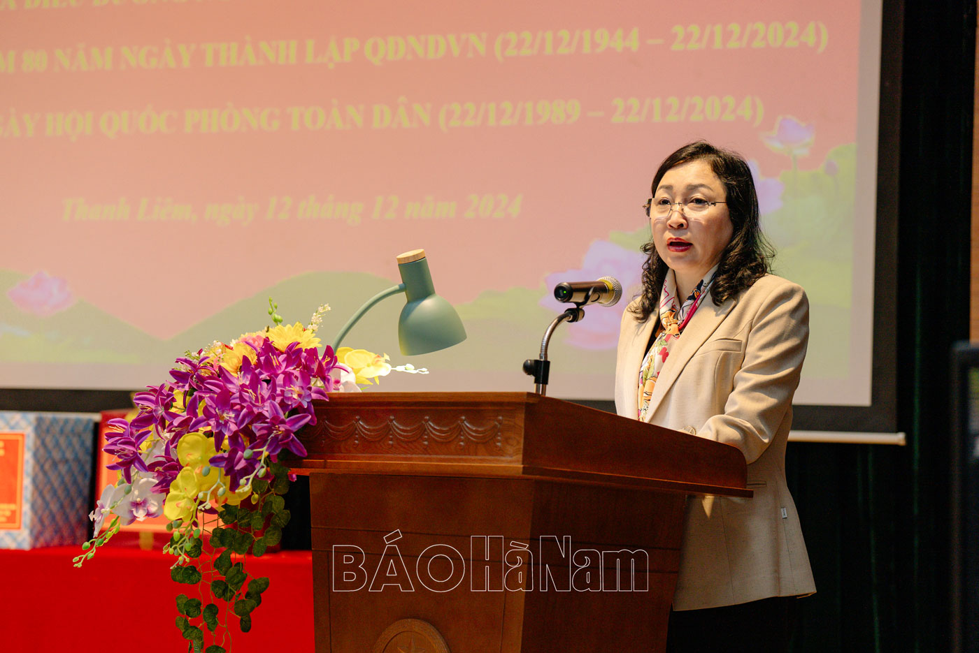 Nhân Kỷ niệm 80 năm Ngày thành lập Quân đội nhân dân (QĐND) Việt Nam; 35 năm Ngày hội Quốc phòng toàn dân, sáng 12/12, đồng chí Đinh Thị Lụa, Phó Bí thư Thường trực Tỉnh ủy đã đến thăm, tặng quà Trung tâm Nuôi dưỡng thương, bệnh binh nặng và Điều dưỡng người có công tỉnh Hà Nam và người có công với cách mạng trên địa bàn huyện Thanh Liêm. Cùng đi có các đồng chí lãnh đạo Văn phòng Tỉnh ủy, Sở Lao động, Thương binh và Xã hội, lãnh đạo huyện Thanh Liêm.