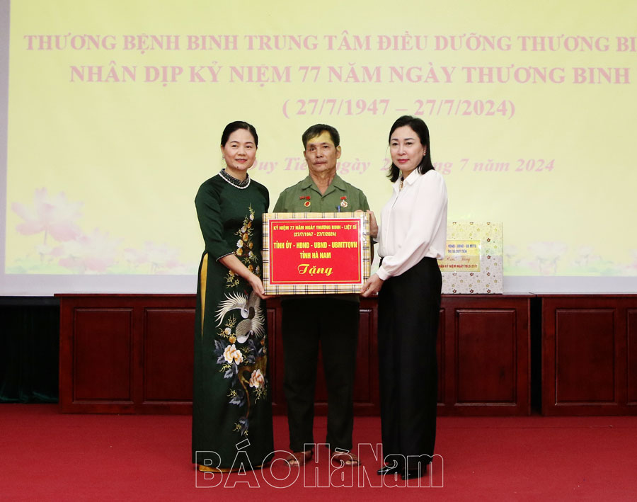 Đồng chí Phó Bí thư Thường trực Tỉnh ủy Đinh Thị Lụa khẳng định: Thực hiện chủ trương của Đảng, Nhà nước, cùng với cả nước, Đảng bộ, chính quyền, quân và dân tỉnh Hà Nam đã lãnh đạo, chỉ đạo thực hiện tốt chủ trương, chính sách đối với thương binh, bệnh binh, gia đình liệt sỹ và người có công với cách mạng. Phong trào “Đền ơn đáp nghĩa” với nhiều hoạt động phong phú, thiết thực đã kịp thời hỗ trợ, giúp đỡ, nâng cao đời sống vật chất, tinh thần cho thương binh, bệnh binh, gia đình liệt sỹ và người có công với cách mạng. Các hoạt động xây dựng nhà tình nghĩa, tặng sổ tiết kiệm, phụng dưỡng và giúp đỡ các đối tượng chính sách được các cấp, các ngành và Nhân dân trong tỉnh tham gia hưởng ứng tích cực. Đến nay, 100% Mẹ Việt Nam anh hùng trên địa bàn tỉnh được các địa phương, cơ quan, đơn vị phụng dưỡng suốt đời. Năm 2023, tỉnh đã trích trên 35 tỷ đồng và 6 tháng đầu năm 2024, tỉnh đã trích 18 tỷ đồng để thăm hỏi tặng quà các đối tượng chính sách, người có công với cách mạng.