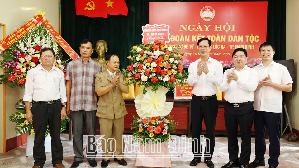 Nhân dịp kỷ niệm 94 năm ngày thành lập Mặt trận Dân tộc Thống nhất Việt Nam - Ngày truyền thống MTTQ Việt Nam (18/11/1930 - 18/11/2024), ngày 15/11, đồng chí Lê Quốc Chỉnh, Phó Bí thư Thường trực Tỉnh uỷ, Trưởng đoàn Đoàn đại biểu Quốc hội tỉnh, Chủ tịch HĐND tỉnh đến dự Ngày hội Đại đoàn kết toàn dân tộc ở khu dân cư Đệ Tứ, phường Lộc Hạ (thành phố Nam Định).