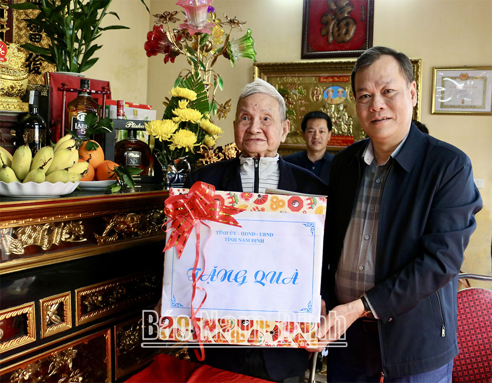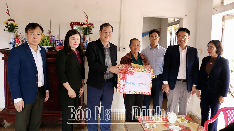 Đồng chí Phó Bí thư Thường trực Tỉnh uỷ và đoàn đã đến thăm, tặng quà chúc Tết bà Ngô Thị Hột, sinh năm 1952, là vợ liệt sĩ ở xã Trực Chính; gia đình thương binh Vũ Xuân Rụ, sinh năm 1934 ở xã Phương Định và bà Nguyễn Thị Mít, sinh năm 1957, thuộc hộ nghèo, cô đơn ở thị trấn Cổ Lễ.