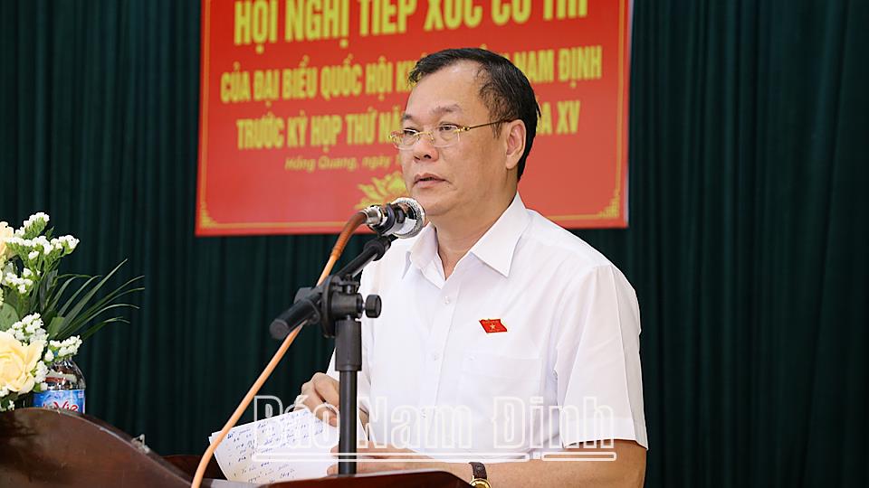 | Đồng chí Lê Quốc Chỉnh, Phó Bí thư Thường trực Tỉnh ủy, Chủ tịch HĐND tỉnh, Trưởng đoàn Đoàn ĐBQH tỉnh và các ĐBQH tiếp xúc cử tri huyện Nghĩa Hưng. |