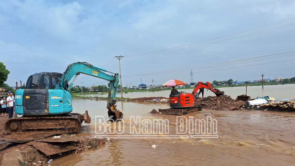 Do ảnh hưởng bởi mưa, lũ lớn sau bão số 3, mực nước sông dâng cao trên báo động 3 đã gây sạt lở một đoạn bờ bao kênh xả trạm bơm Quán Chuột thuộc địa bàn xã Mỹ Tân; ảnh hưởng đến sản xuất nông nghiệp và an toàn của người dân trên địa bàn xã và nhiệm vụ điều tiết nước phòng, chống thiên tai của Trạm bơm Quán Chuột. Trước tình hình đó, thành phố Nam Định đã nhanh chóng huy động các lực lượng, thiết bị để đắp bờ ngăn tràn; tổ chức làm đường tạm để đưa thiết bị, máy móc, vật tư vào điểm sạt lở tiến hành xếp bao cát chống tràn, đóng cọc, vá điểm sạt lở…; thực hiện di dời các hộ dân trong vùng nguy hiểm có nguy cơ bị ảnh hưởng vào các điểm tránh trú an toàn phía trong đê. Đến chiều 12/9, điểm sạt lở đã được xử lý cơ bản; sáng 13/9 thành phố Nam Định đã chỉ đạo Công ty Cổ phần Công trình Đô thị Nam Định tiến hành mở cánh phai cống xả Trạm bơm Quán Chuột; vận hành các tổ máy để tiêu thoát nước phục vụ nhiệm vụ phòng, chống thiên tai...