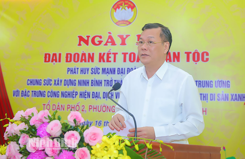 Đồng chí Phó Bí thư Tỉnh ủy, Chủ tịch HĐND tỉnh Lê Quốc Chỉnh dự Ngày hội Đại đoàn kết toàn dân tộc tại tổ dân phố 2, phường Tam Điệp