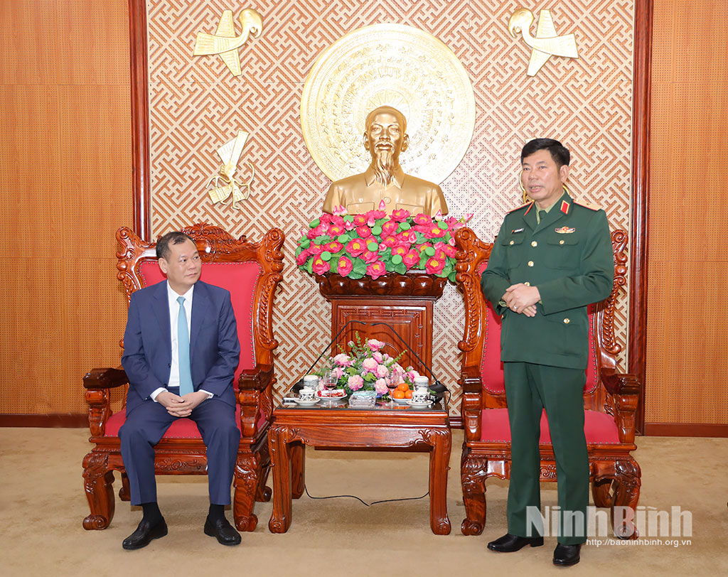 Phát biểu tại buổi tiếp, đồng chí Thiếu tướng Tô Thành Quyết, Phó Tư lệnh Quân khu 3 trân trọng cảm ơn tình cảm, sự quan tâm của lãnh đạo tỉnh Ninh Bình đối với lực lượng vũ trang Quân khu. Đồng thời khẳng định, thời gian qua, Quân khu 3 luôn quan tâm lãnh đạo, chỉ đạo lực lượng vũ trang địa phương thực hiện tốt nhiệm vụ quân sự, quốc phòng, tích cực tham gia phát triển kinh tế - xã hội, củng cố hệ thống chính trị cơ sở, xây dựng thế trận quốc phòng toàn dân gắn với thế trận an ninh nhân dân vững chắc. Đồng chí đánh giá cao sự phối hợp chặt chẽ, hiệu qủa của tỉnh Ninh Bình trong triển khai các nhiệm vụ quốc phòng, quân sự địa phương, đồng thời khẳng định thời gian tới, Quân khu sẽ tiếp tục quan tâm, tạo điều kiện, phối hợp chặt chẽ với tỉnh trong xây dựng lực lượng vũ trang địa phương vững mạnh, xây dựng khu vực phòng thủ ngày càng vững chắc, đáp ứng yêu cầu nhiệm vụ trong tình hình mới.