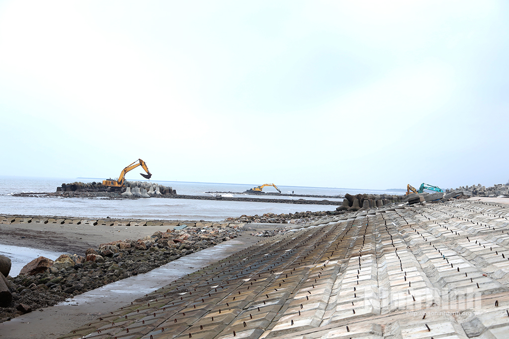 Không khí lao động đầu năm mới tại Dự án thành phần số 2 đê biển Cồn Tròn, xã Hải Thịnh.