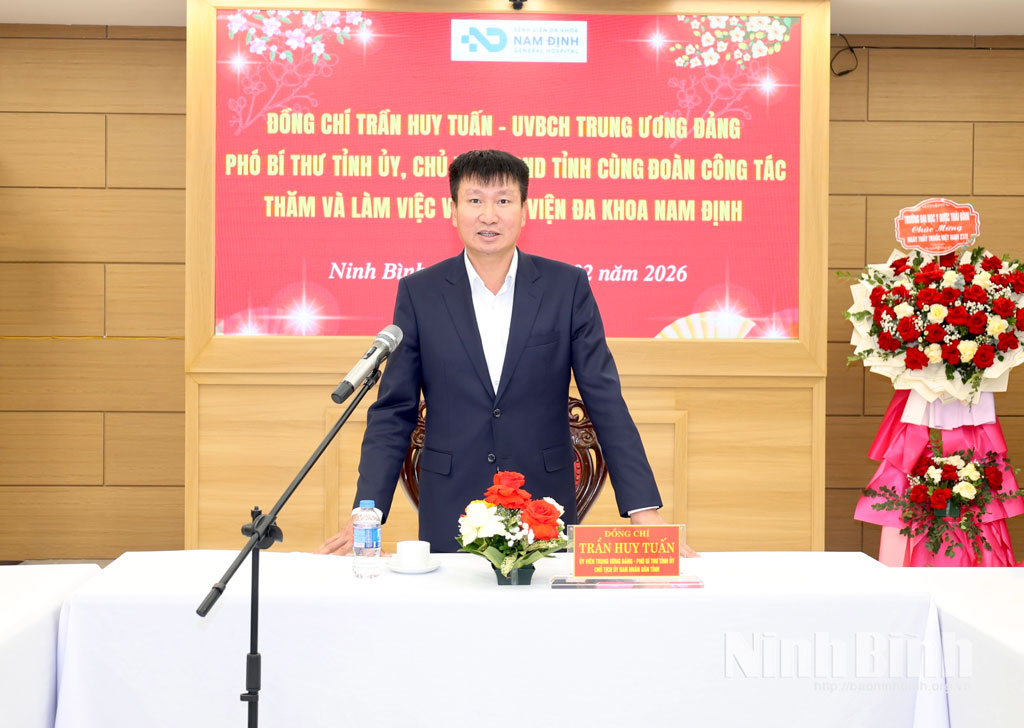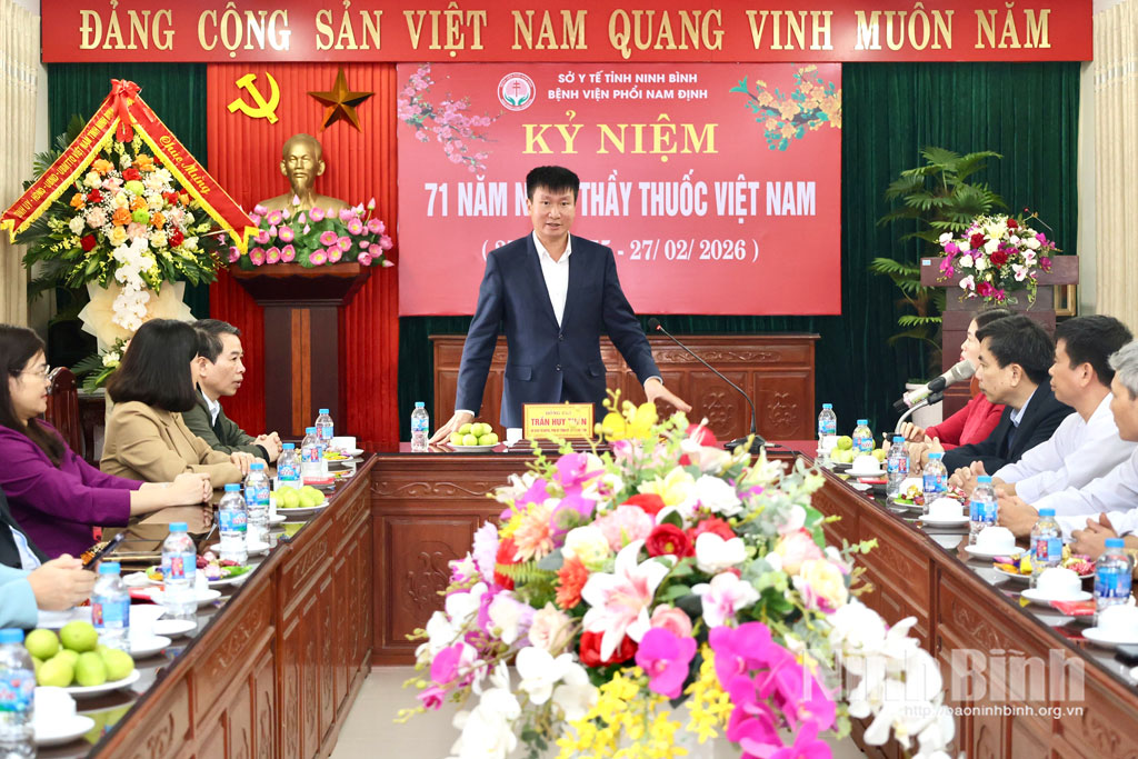 Nhân kỷ niệm 71 năm Ngày Thầy thuốc Việt Nam (27/2/1955-27/2/2026), ngày 24/2, đồng chí Trần Huy Tuấn, Ủy viên Trung ương Đảng, Phó Bí thư Tỉnh ủy, Chủ tịch UBND tỉnh đã đi thăm, động viên, chúc mừng cán bộ, nhân viên y tế: Bệnh viện Đa khoa Nam Định, Bệnh viện Phổi Nam Định.