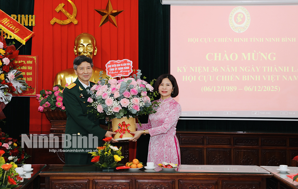 Lãnh đạo Ban Tuyên giáo và Dân vận Tỉnh uỷ tặng hoa chúc mừng Hội Cựu chiến binh tỉnh nhân ngày truyền thống.