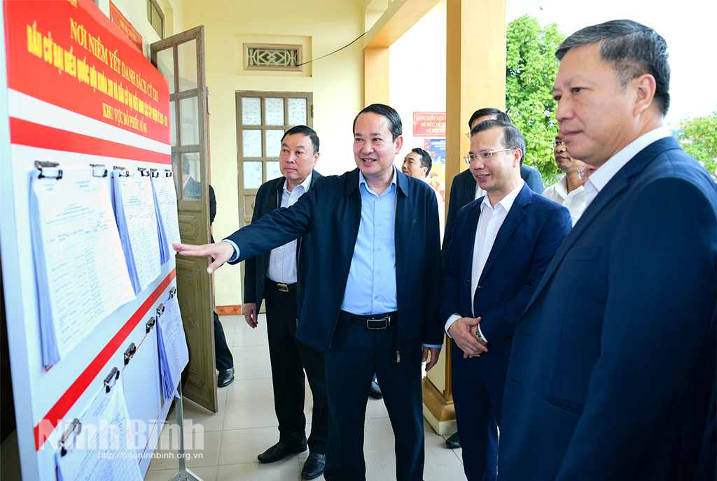 Tại xã Yên Khánh, Đoàn đã đi kiểm tra thực tế công tác chuẩn bị bầu cử tại khu vực bỏ phiếu số 1; đồng thời nghe lãnh đạo địa phương báo cáo tình hình chuẩn bị bầu cử đại biểu Quốc hội khóa XVI và đại biểu HĐND các cấp nhiệm kỳ 2026-2031.