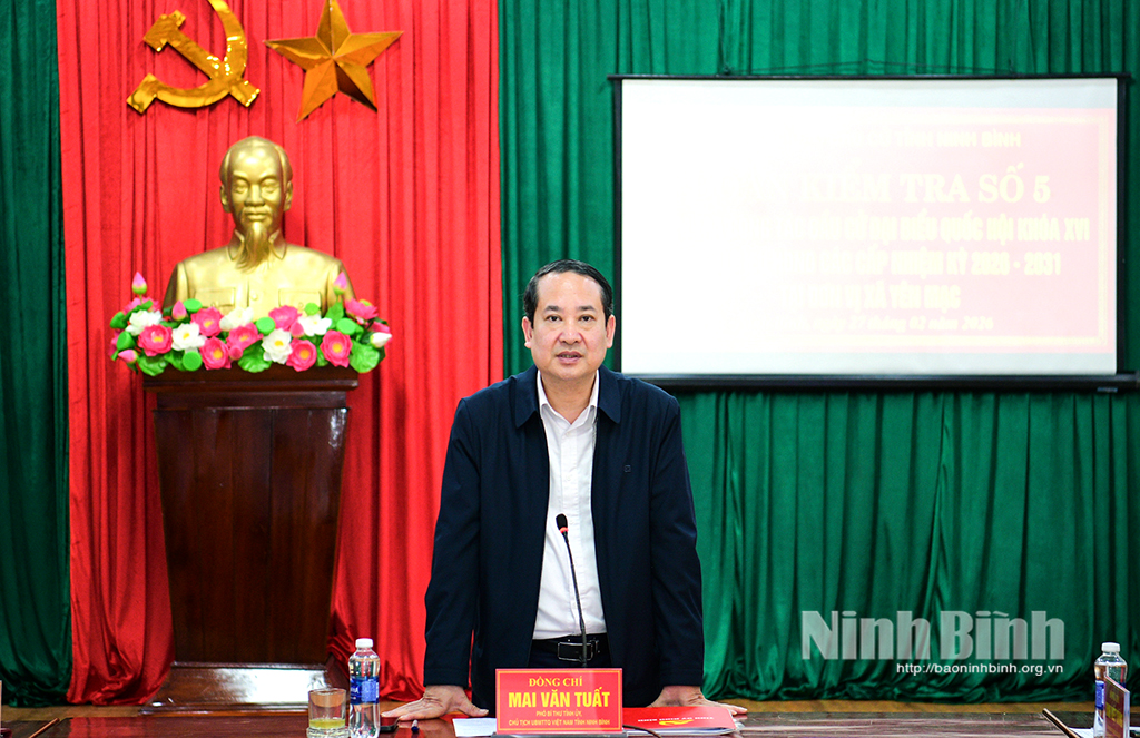 Sáng 27/2, Đoàn kiểm tra của tỉnh do đồng chí Mai Văn Tuất, Phó Bí thư Tỉnh ủy, Chủ tịch Uỷ ban MTTQ Việt Nam tỉnh, Phó Trưởng Ban Chỉ đạo Cuộc bầu cử đại biểu Quốc hội (ĐBQH) khóa XVI và đại biểu HĐND các cấp tỉnh Ninh Bình nhiệm kỳ 2026-2031 (Ban Chỉ đạo cuộc bầu cử tỉnh) làm Trưởng đoàn đã đi kiểm tra công tác bầu cử tại các xã Yên Từ, Yên Mạc.