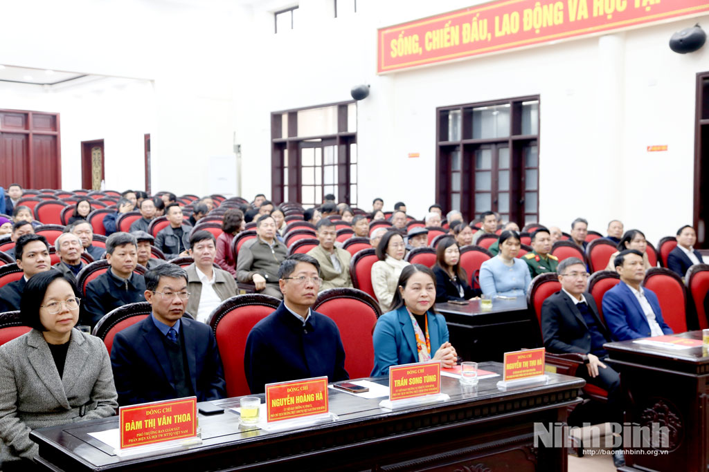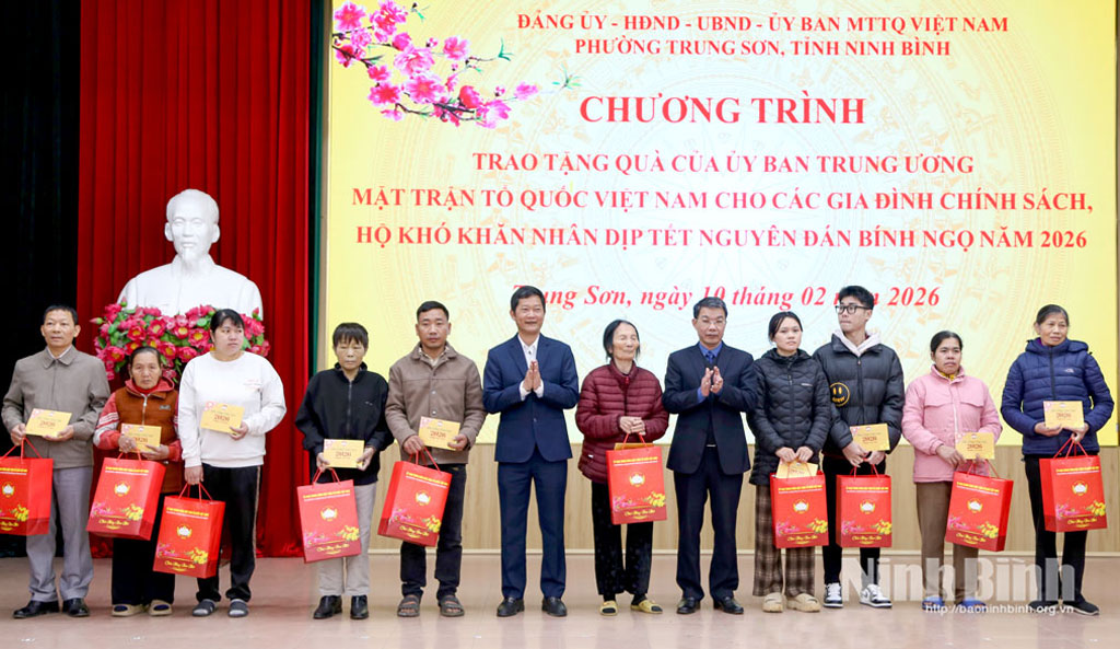 Tại chương trình, lãnh đạo phường Trung Sơn đã thông tin tình hình chuẩn bị đón Tết Nguyên đán Bính Ngọ 2026 của địa phương. Theo đó, phường Trung Sơn luôn quan tâm thực hiện đầy đủ chế độ, chính sách đối với người có công, hỗ trợ hộ nghèo, cận nghèo và người lao động có hoàn cảnh khó khăn. Hiện trên địa bàn phường có 1.370 đối tượng cần được quan tâm chăm lo Tết, trong đó 849 đối tượng có chế độ, chính sách. Địa phương đã tiếp nhận và chuyển 3.704 suất quà của Chủ tịch nước, quà của tỉnh, phường và các cơ quan, đơn vị, doanh nghiệp, nhà hảo tâm với tổng số tiền hơn 1,9 tỷ đồng, đảm bảo kịp thời, công khai, minh bạch, đúng đối tượng. Trong đó, quà của Chủ tịch nước 481 suất; quà của tỉnh 1.141 suất; quà của phường 543 suất và quà của các cơ quan, tổ chức, cá nhân là 1.539 suất. Bên cạnh công tác chăm lo đời sống Nhân dân, phường Trung Sơn cũng tăng cường các giải pháp bảo đảm an ninh trật tự, an toàn xã hội, giữ vững ổn định địa bàn trước, trong và sau Tết, tạo điều kiện để Nhân dân vui Xuân, đón Tết an toàn, lành mạnh.