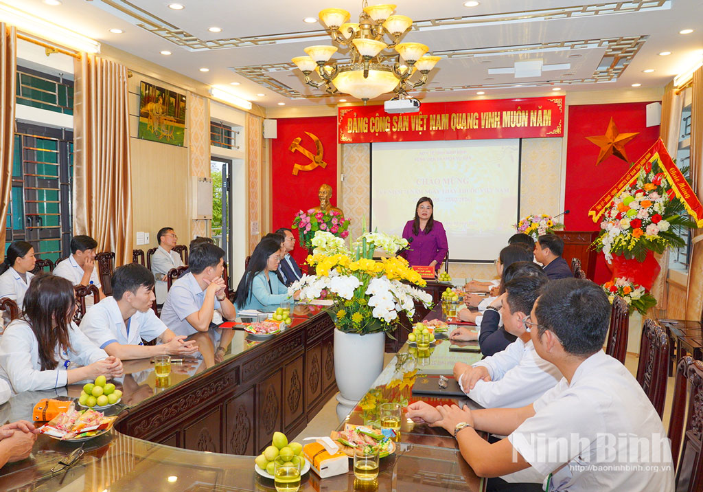 Quang cảnh buổi thăm, chúc mừng tập thể cán bộ, viên chức, người lao động Bệnh viện Đa khoa Vụ Bản.