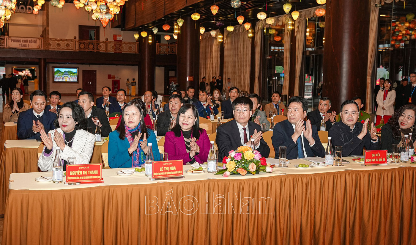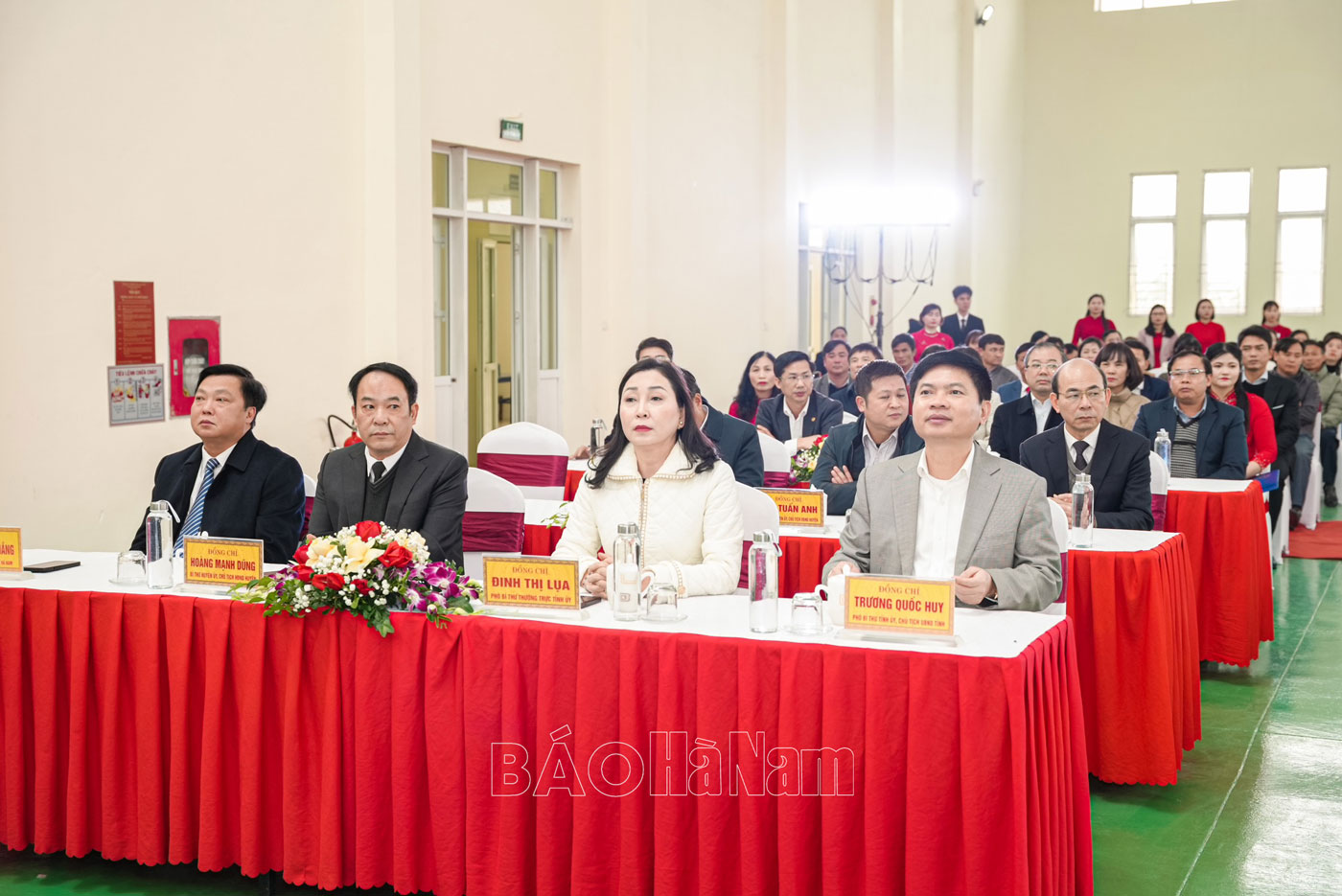 Nhân dịp này, đồng chí Phó Chủ tịch Quốc hội đã có lẵng hoa tươi thắm chúc mừng Đảng bộ, chính quyền và nhân dân thị xã Kim Bảng.