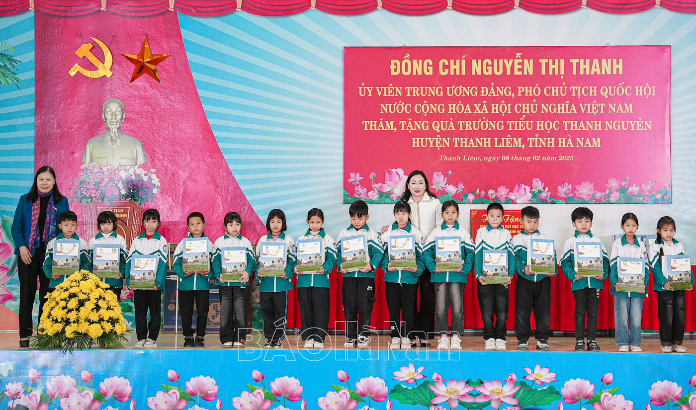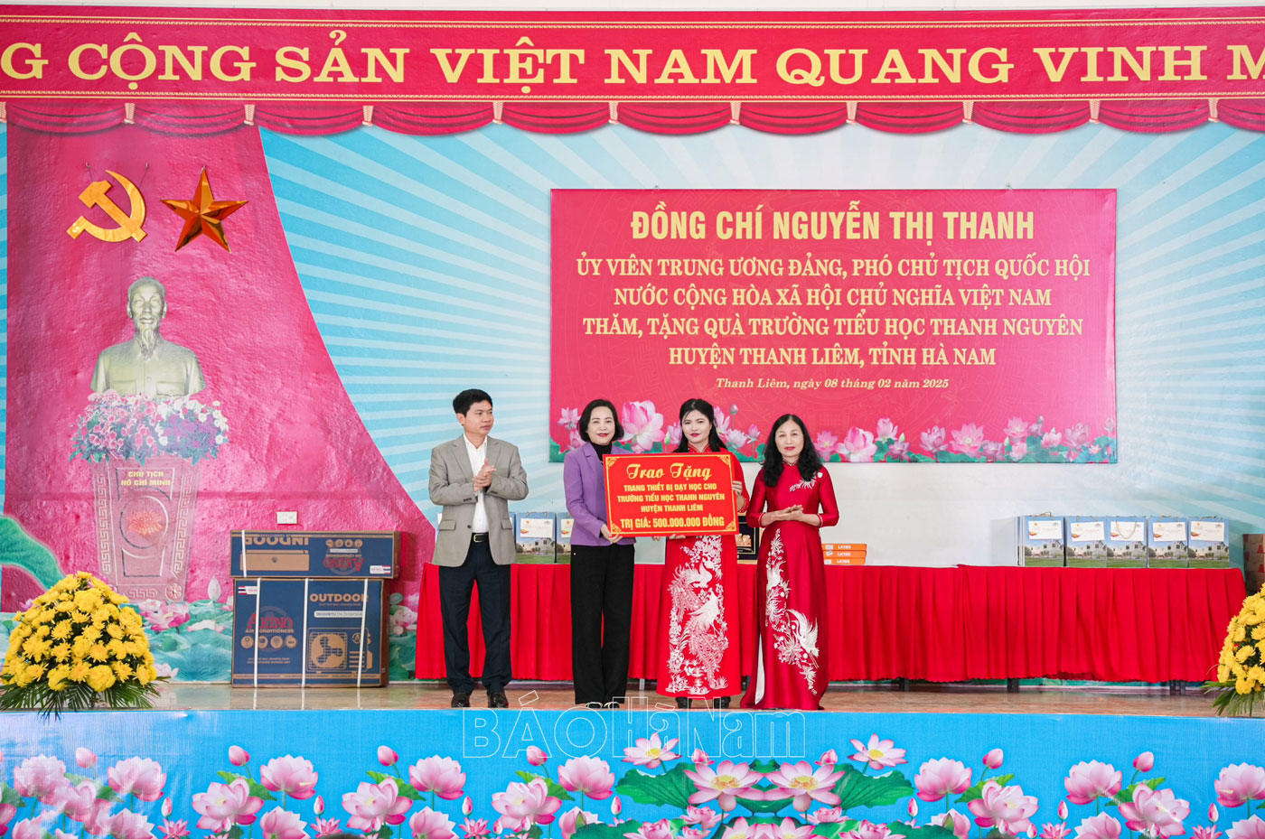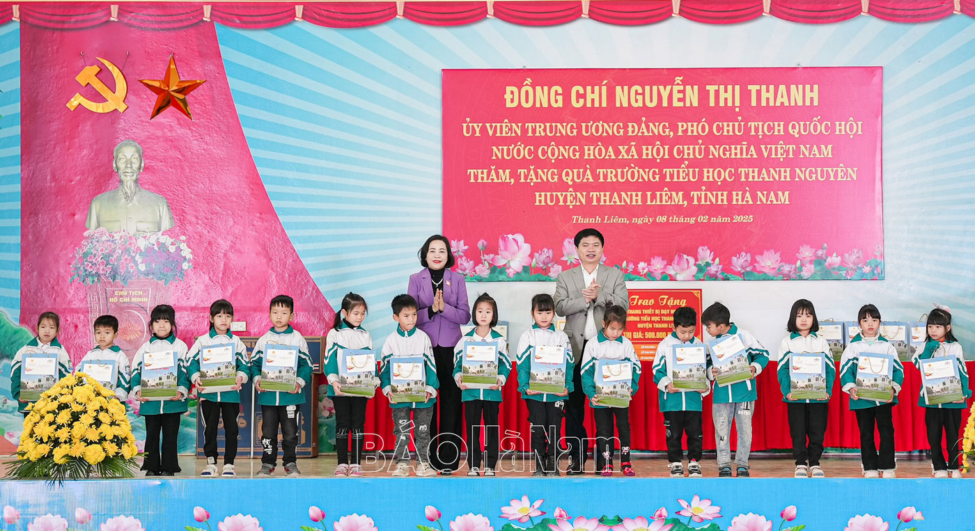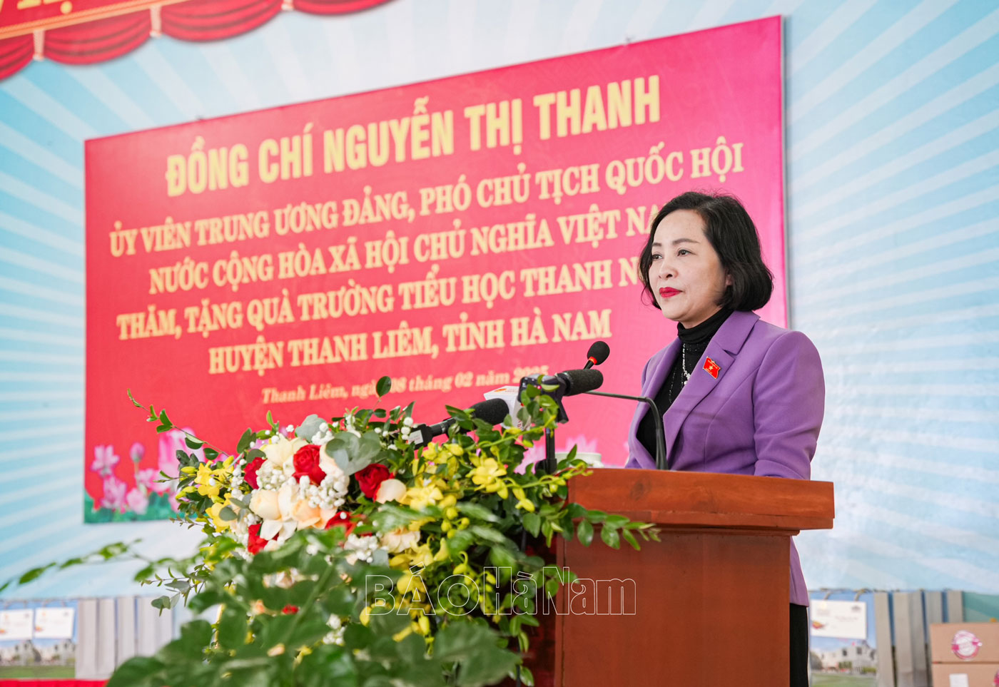 Trước đó, đồng chí Phó Chủ tịch Quốc hội Nguyễn Thị Thanh đã tới thăm, chúc mừng và tặng quà thầy cô giáo, học sinh Trường Tiểu học Thanh Nguyên (xã Thanh Nguyên, huyện Thanh Liêm).