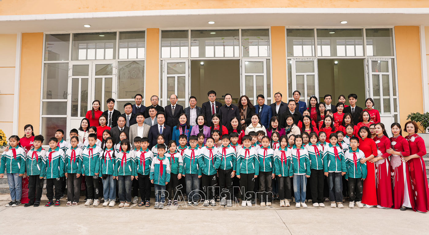 Các đại biểu dự chương trình thăm Trường Tiểu học Thanh Nguyên.
