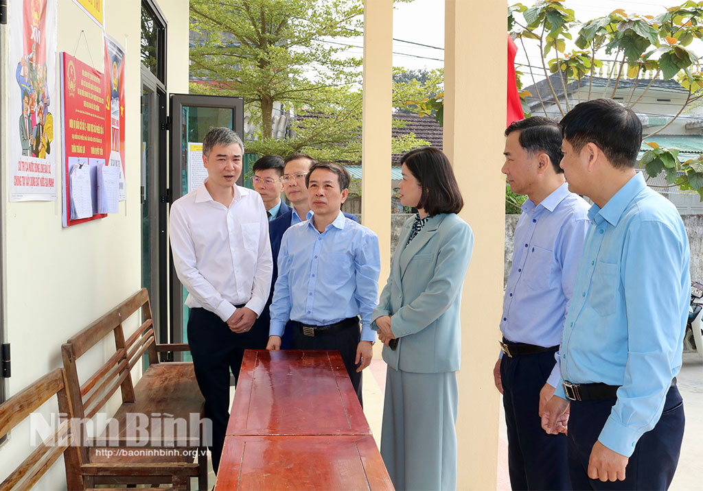 Đồng chí Bùi Hoàng Hà, Ủy viên Ban Thường vụ Tỉnh ủy, Phó Chủ tịch Thường trực HĐND tỉnh, Ủy viên Ban Chỉ đạo Cuộc bầu cử tỉnh, Phó Chủ tịch Ủy ban Bầu cử tỉnh kiểm tra công tác chuẩn bị bầu cử tại xã Vụ Bản.