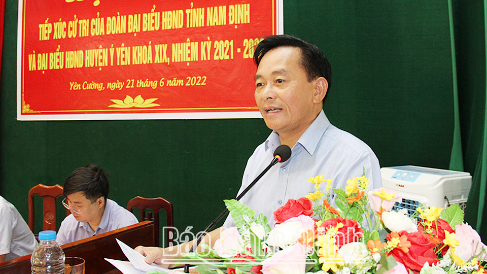 Tại điểm tiếp xúc cử tri, đại biểu HĐND tỉnh đã báo cáo với cử tri kết quả các kỳ họp thứ tư, thứ năm và dự kiến nội dung, chương trình kỳ họp thứ 7 (kỳ họp thường lệ giữa năm 2022) HĐND tỉnh khóa XIX, nhiệm kỳ 2021-2026; báo cáo tóm tắt kết quả thực hiện nhiệm vụ phát triển kinh tế - xã hội 6 tháng đầu năm, nhiệm vụ trọng tâm 6 tháng cuối năm 2022; báo cáo trả lời kiến nghị cử tri của UBND tỉnh liên quan đến huyện Ý Yên. Theo đó, kỳ họp thứ 7 HĐND tỉnh được tổ chức trong 2 ngày mồng 4 và 5 tháng 7-2022. Kỳ họp sẽ thông qua các báo cáo của UBND tỉnh; báo cáo của HĐND, các ban HĐND tỉnh, báo cáo của các cơ quan tư pháp, xem xét thông qua các nghị quyết trên các lĩnh vực. Kỳ họp cũng tiến hành thảo luận, trả lời ý kiến, kiến nghị của cử tri gửi tới HĐND tỉnh.