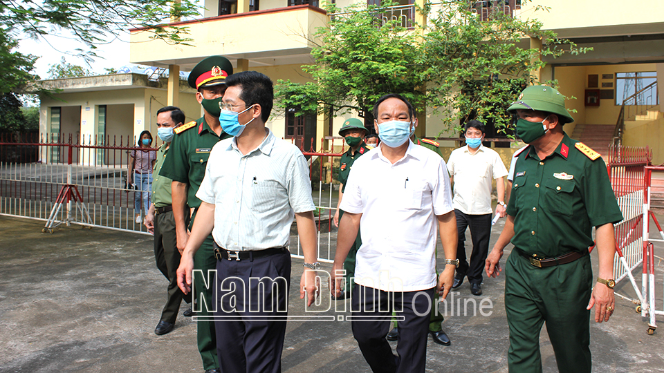 | Đồng chí Trần Anh Dũng, Ủy viên Ban TVTU, Phó Chủ tịch Thường trực UBND tỉnh kiểm tra công tác phòng chống dịch bệnh COVID-19 tại Khu cách ly tập trung của huyện thuộc địa bàn xã Cộng Hoà (Vụ Bản). |