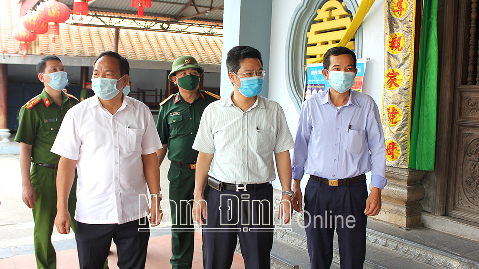 | Đồng chí Trần Anh Dũng, Ủy viên Ban TVTU, Phó Chủ tịch Thường trực UBND tỉnh kiểm tra công tác phòng chống dịch bệnh COVID-19 tại Khu di tích lịch sử Phủ Dầy (Vụ Bản). |