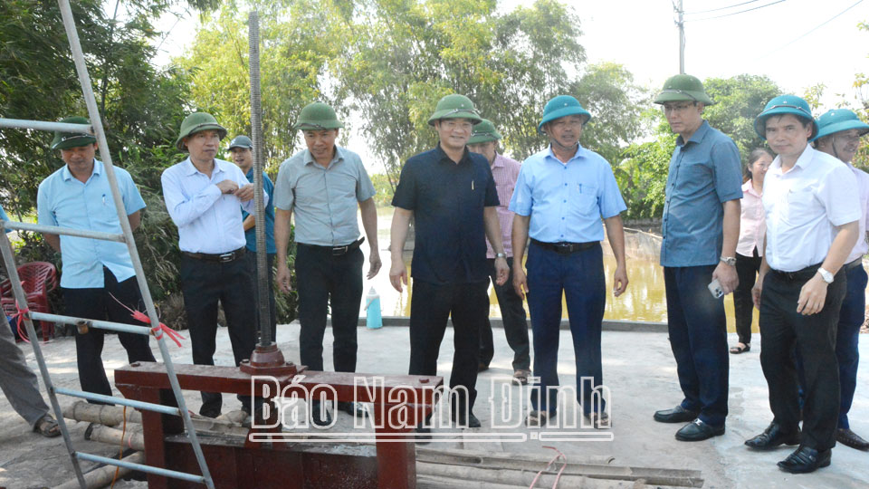 | Đồng chí Phó Chủ tịch Thường trực UBND tỉnh Trần Anh Dũng kiểm tra công tác vận hành trạm bơm CB36 để úng phục vụ sản xuất vụ mùa năm 2024 tại xã Trực Khang (Trực Ninh). |