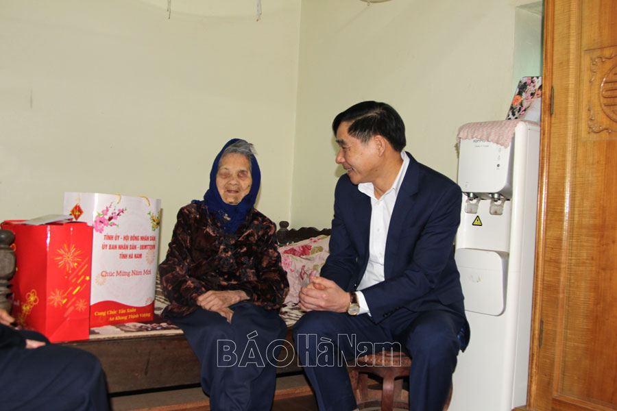 Nhân dịp Tết Nguyên đán Ất Tỵ 2025, sáng 15/1, đồng chí Nguyễn Anh Chức, Ủy viên Ban Thường vụ Tỉnh ủy, Phó Chủ tịch Thường trực UBND tỉnh đã tới thăm, tặng quà người cao tuổi, gia đình chính sách, đối tượng bảo trợ xã hội trên địa huyện Bình Lục. Cùng tham gia có đại diện Sở Lao động - Thương binh và Xã hội; đại diện lãnh đạo huyện Bình Lục.