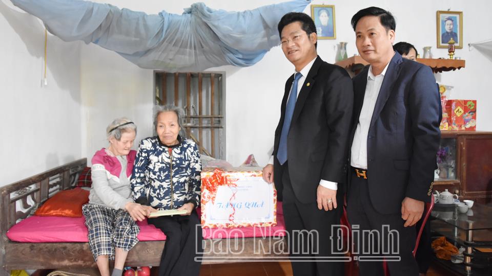 Ðồng chí Phó Chủ tịch Thường trực UBND tỉnh đã đến thăm, tặng quà, chúc Tết Bà mẹ Việt Nam Anh hùng Trần Thị Yên, 103 tuổi, ở tổ dân phố Lương Thế Vinh, thị trấn Gôi; thương binh Trần Trọng Mai, 75 tuổi, ở tổ dân phố Non Côi, thị trấn Gôi; bà Đỗ Thị Phiên, 72 tuổi và em gái là Đỗ Thị Lợi đều bị khuyết tật đặc biệt nặng, ở thôn Tiền, xã Tam Thanh.