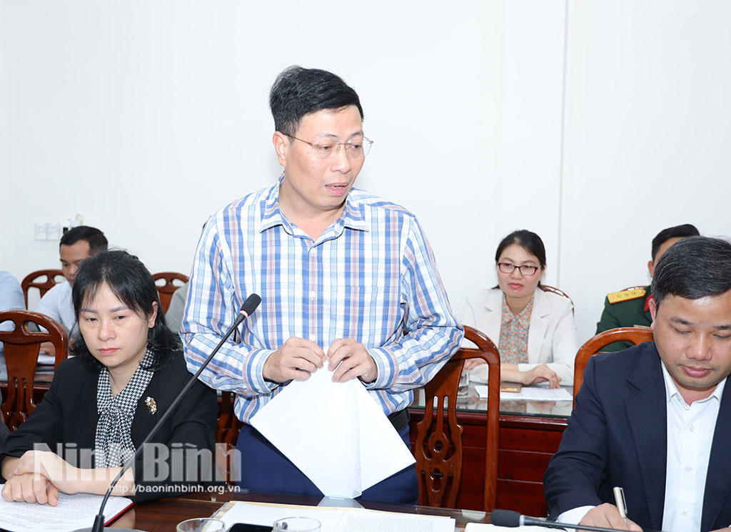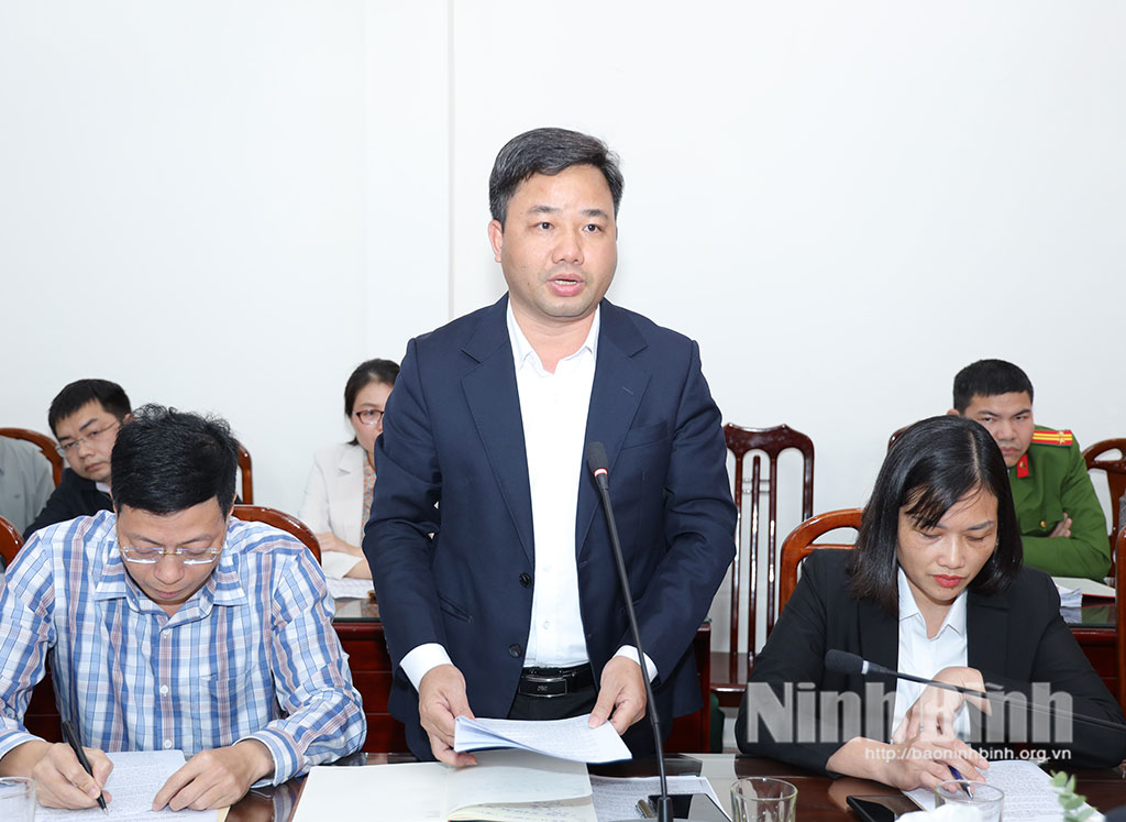 Đồng chí Trần Song Tùng, Ủy viên Ban Thường vụ Tỉnh ủy, Phó Chủ tịch Thường trực UBND tỉnh phát biểu tại buổi làm việc với xã Giao Bình, Giao Ninh.