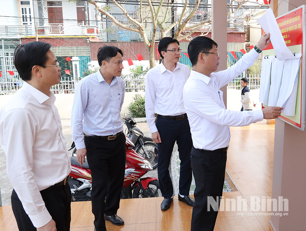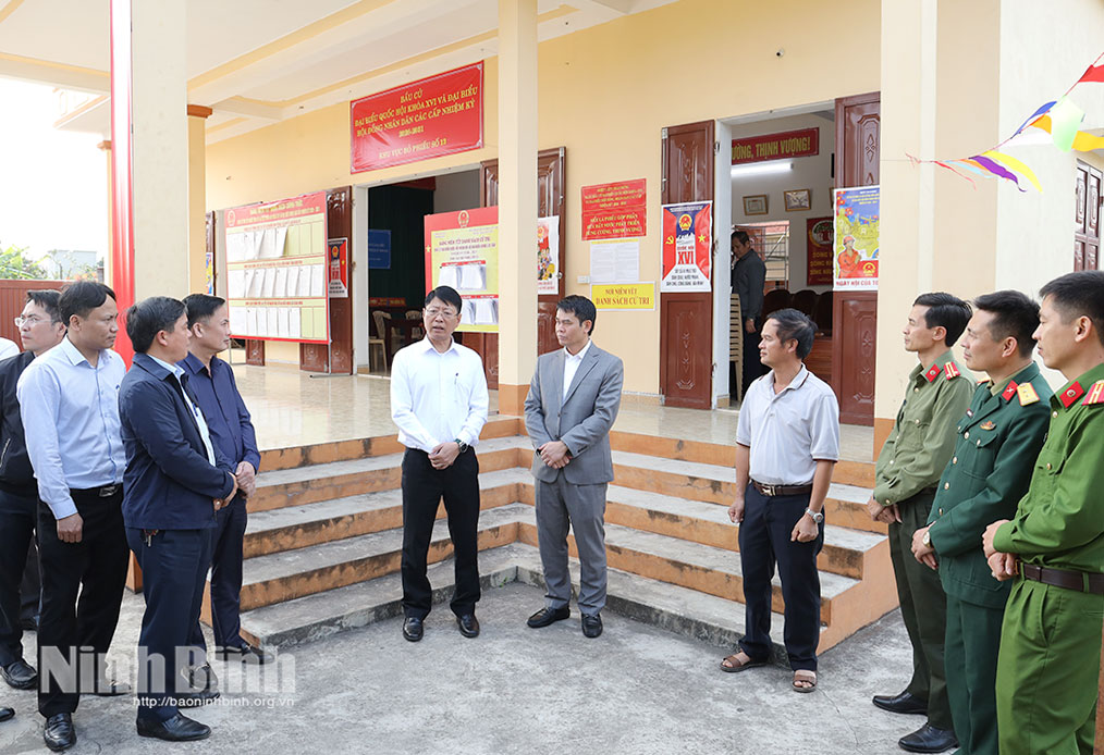 Đồng chí Trần Song Tùng, Ủy viên Ban Thường vụ Tỉnh ủy, Phó Chủ tịch Thường trực UBND tỉnh và Đoàn công tác kiểm tra công tác bầu cử tại xã Giao Bình.