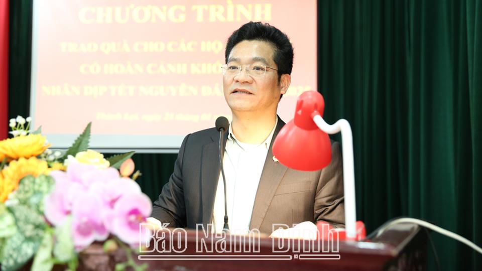 Chiều 23/1, các đồng chí: Trần Anh Dũng, Ủy viên Ban TVTU, Phó Chủ tịch Thường trực UBND tỉnh; Trần Minh Thắng, Ủy viên Ban TVTU, Chủ tịch Ủy ban Mặt trận Tổ quốc Việt Nam tỉnh; Nguyễn Hải Dũng, TUV, Phó trưởng đoàn chuyên trách Đoàn đại biểu Quốc hội tỉnh đã trao tặng quà Tết cho các gia đình có hoàn cảnh khó khăn, hộ nghèo, hộ cận nghèo của xã Thành Lợi (Vụ Bản).