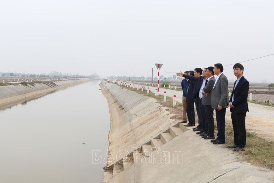 Kiểm tra kênh tưới, tiêu Tân Hòa, trên địa bàn xã Tiêu Động (Bình Lục).