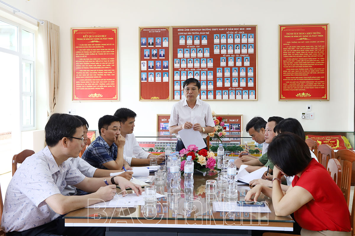 Đồng chí Phó Chủ tịch UBND tỉnh, Trưởng BCĐ Kỳ thi tốt nghiệp THPT năm 2023 tỉnh làm việc với ban lãnh đạo Trường THPT Nam Lý và kiểm tra các khu vực thi tại trường.